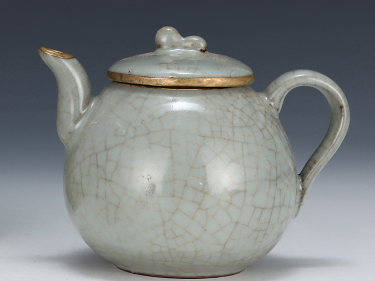 - ▽鴻▽宋朝時代 陶磁器 寿成殿款 官窯灰青釉壺 箱付き 染付 時代物 中国古美術 骨董品