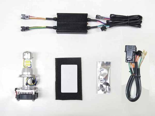プロテック製H4 LEDヘッドライトバルブKITにXSR155対応のヘッドライト接続用ハーネスをセットにしたLEDヘッドライトバルブKIT。