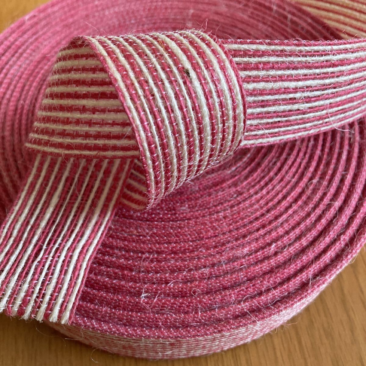 - ラッピングリボン ジュートリボン 約3.0cm 幅 1m 切り売り ピンクストレートライン