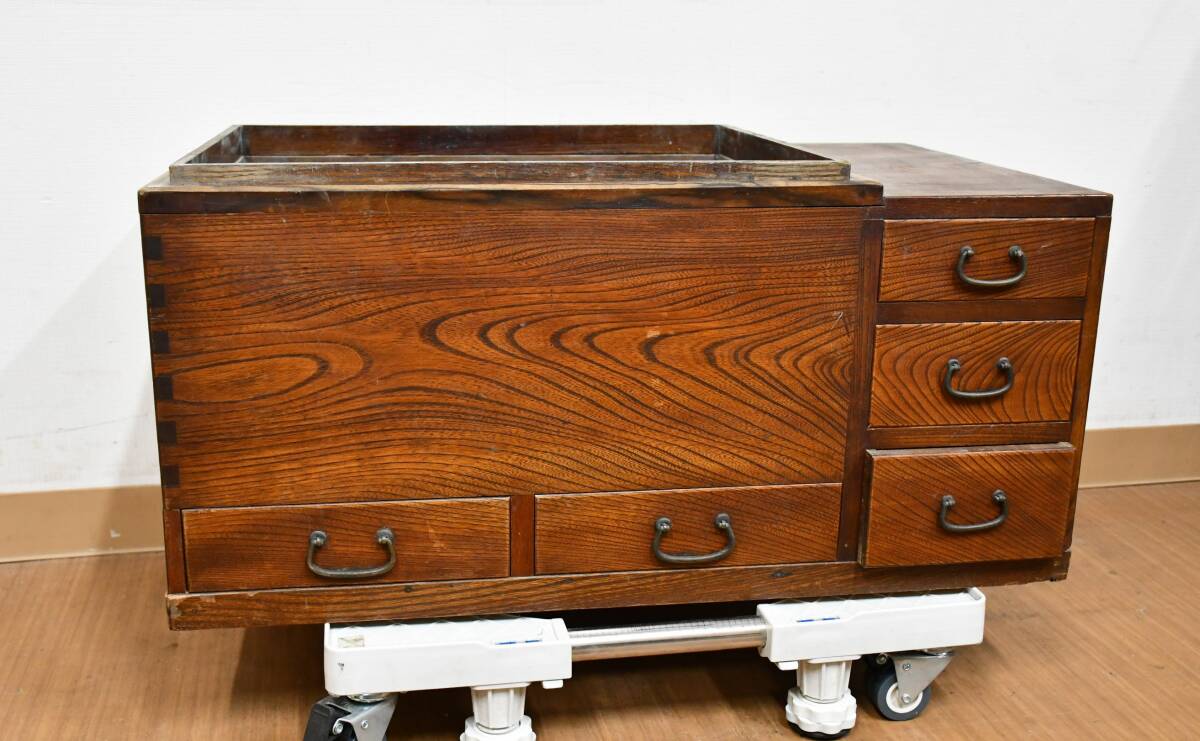 - PY10-36 長火鉢 火鉢テーブル 木製火鉢 囲炉裏 和家具 時代物 古民家 古道具 和室 座敷 五徳 火箸 灰ならし アンティーク レトロ 保管品