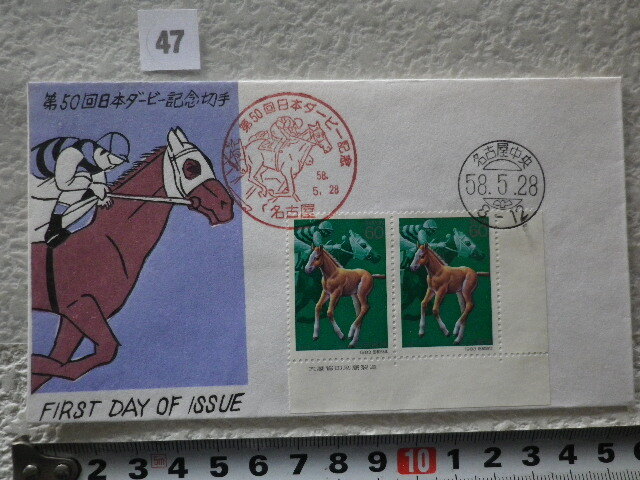 - FDC 第50回日本ダービー 1983年 2貼2消 銘板付 名古屋印 解説書有 松屋●47●