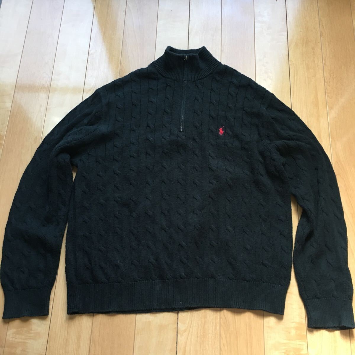 - ラルフローレン ハーフジップニットセーター 560-1-451 メンズ XXL ブラック 赤ポニー ラルフ