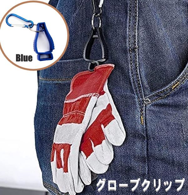 - カラビナ付き グローブクリップ ブルー タオルホルダークリップ式 ゴルフ用品 登山 ウォーキング ランニング 釣り