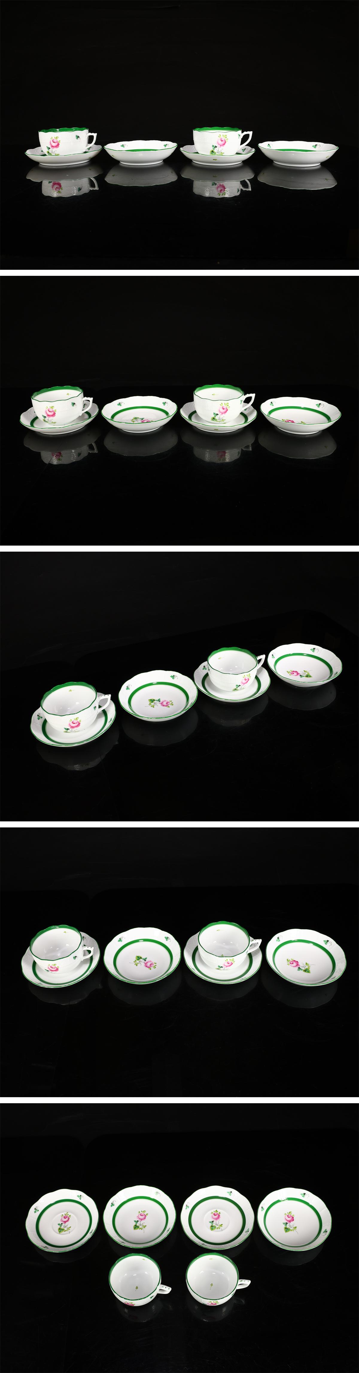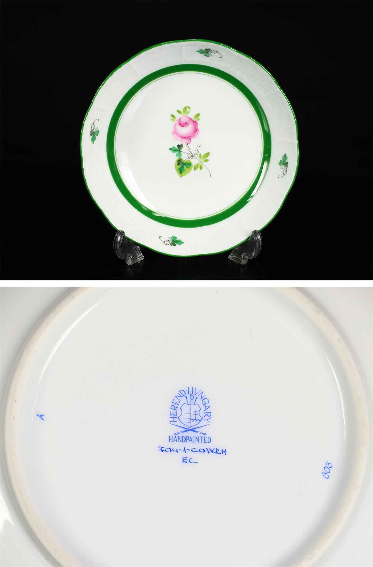 - 【吉】CN300 Herend 【ヘレンド】 緑釉赤薔薇文 カップ&ソーサー プレート 2組 6点セット/美品!