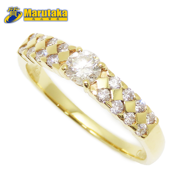 > イエローゴールド ダイヤモンド 0.197ct メレダイヤモンド 0.20ct リング 8.5号 2.0g 18K 18金 指輪 逸品質屋 丸高 尼崎市
