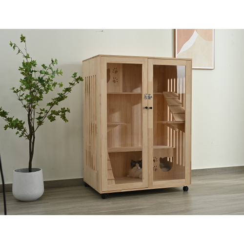 - 猫 ケージ キャットケージ 3段 木製フレーム 広々 大型 猫ゲージ 高級感 おしゃれ キャットハウス ネコ ハウス 多段 留守番 保護 KU761