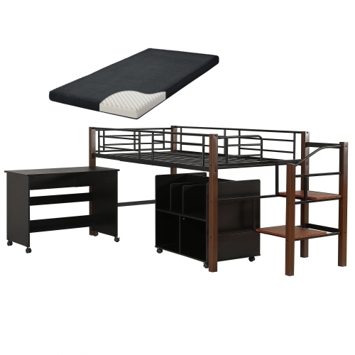 - 【マット付き】ロフトベッド パイプベッド シングル 耐荷重150kg 高さ109m ハイベッド ロフトベッドロータイプ 棚 収納 北欧風 一 KU912
