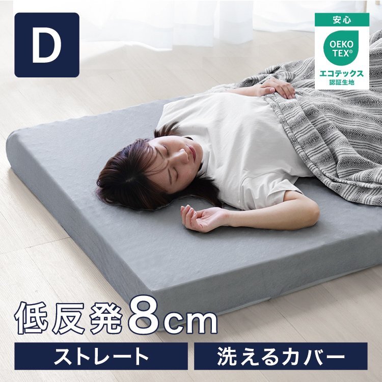 > 低反発マットレス ダブル 厚さ8cm 高密度ウレタン 体圧分散 パイル生地 ベットマット パッド 敷き布団 洗えるカバー 寝具 グレー