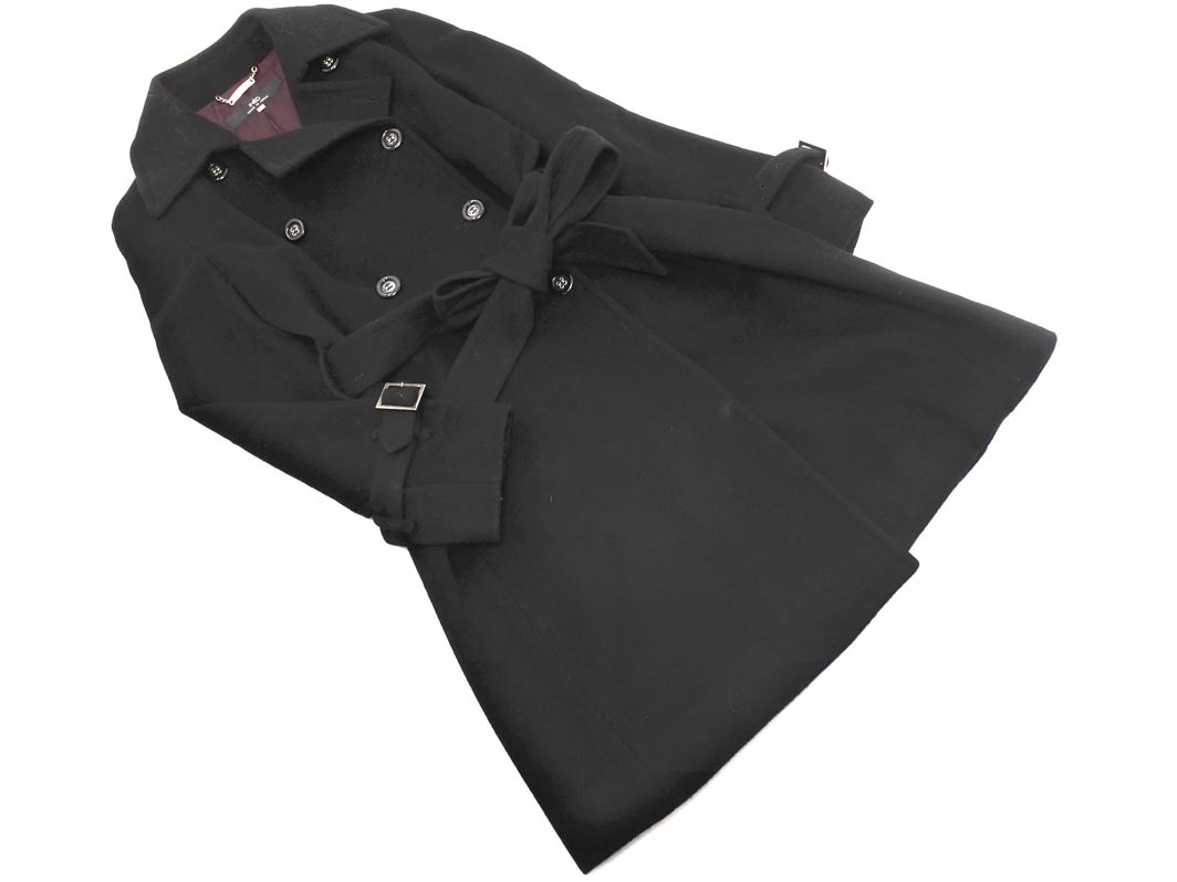 - INED イネド ウール100% ダブル ウエストリボン コート size9/黒 ◇■ ☆ fjb4 レディース