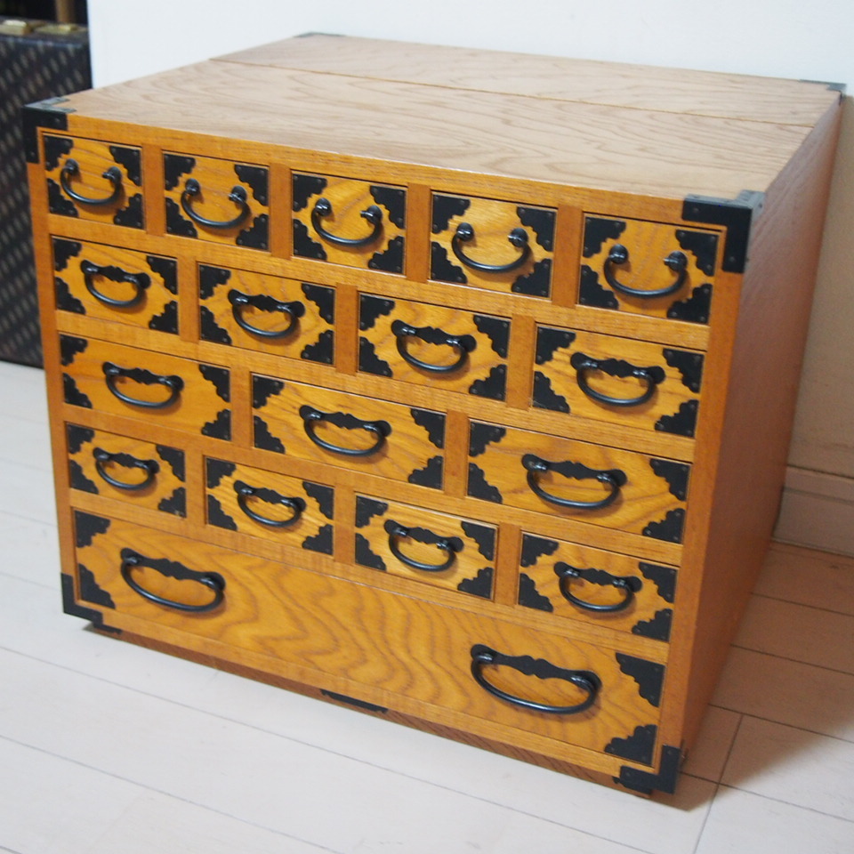 - 木製 薬箪笥 小箪笥 小引き出し 薬箱 5段 17引き出し 昭和レトロ