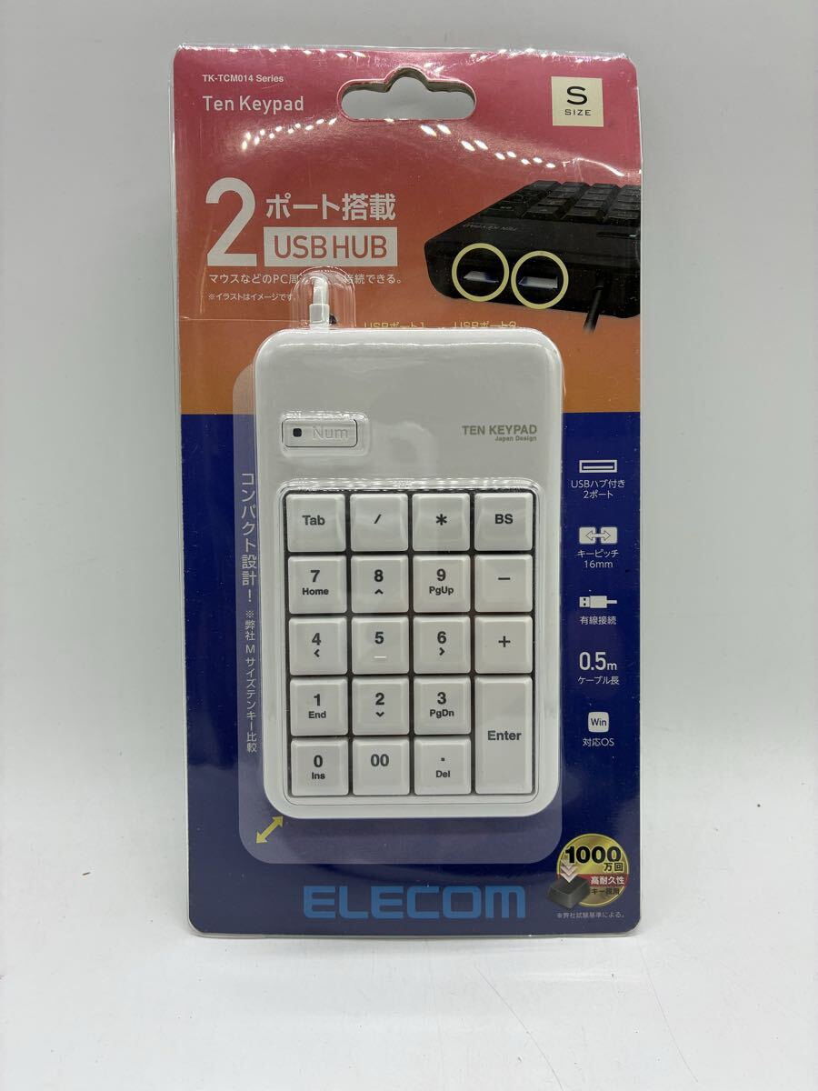 > 【未開封品】エレコム ELECOM 有線テンキーボード Sサイズ メンブレン 高耐久 USBハブ付 ホワイト TK-TCM014WH