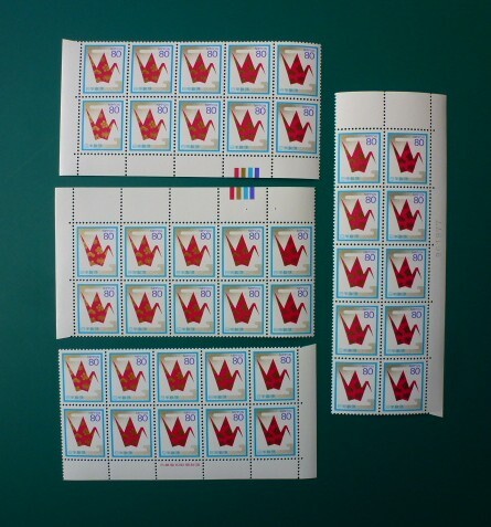 > 大蔵銘版より 80円 つる カラーマーク上と下と銘版と計数 各10枚ブロック 未使用 完美品 K-10-7s