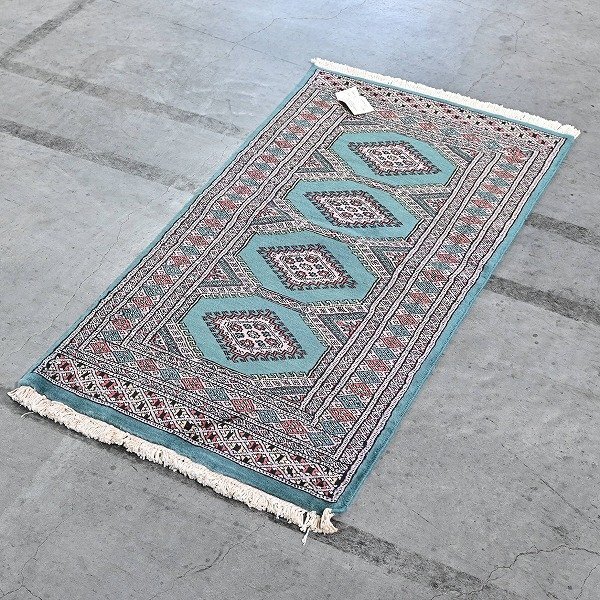 - 新品 未使用 パキスタン製 手織り ウール絨毯 ラグ ボハラ柄 ギュル文様 ハンドノット 羊毛 カーペット マット ホテル 応接室 P-112