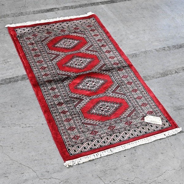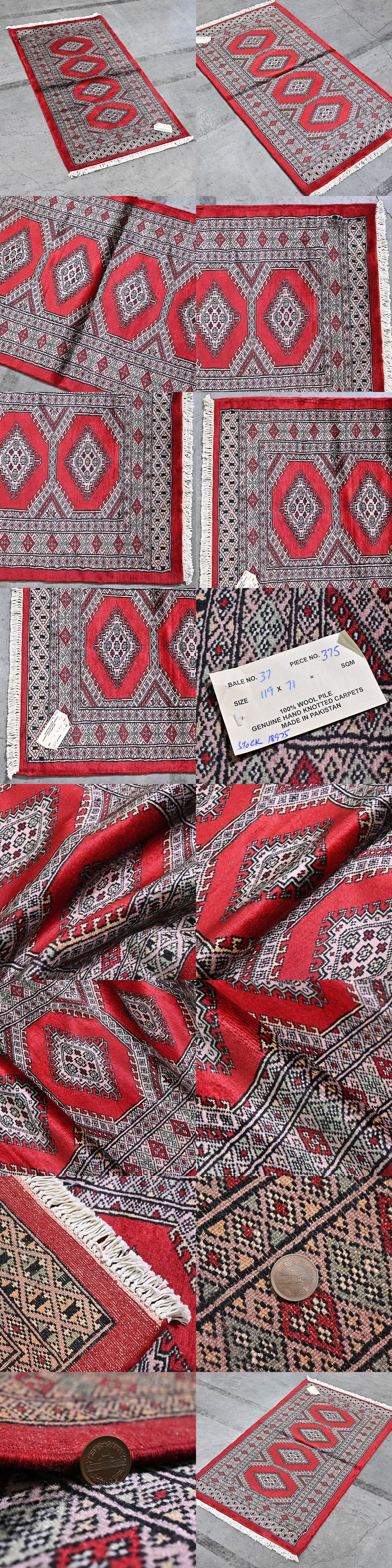 > 新品 未使用 パキスタン製 手織り ウール絨毯 ラグ ボハラ柄 ギュル文様 ハンドノット 羊毛 カーペット マット ホテル 応接室 P-119