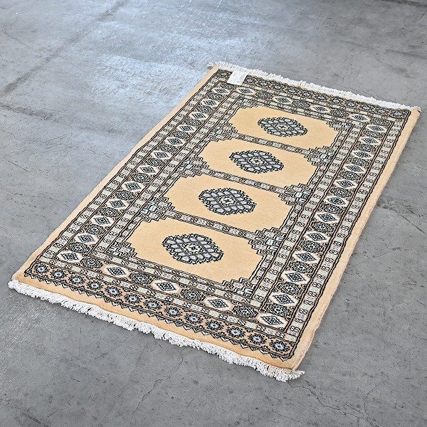 - 新品 未使用 パキスタン製 手織り ウール絨毯 ラグ ボハラ柄 ギュル文様 ハンドノット 羊毛 カーペット マット ホテル 応接室 P-96