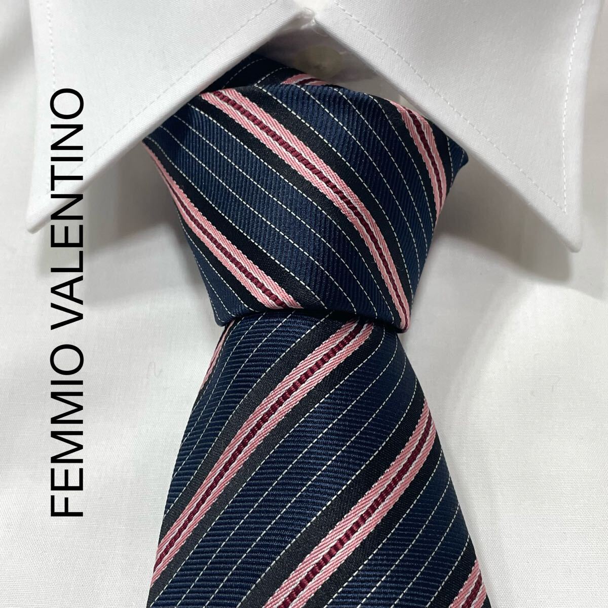 - FEMMIO VALENTINO ヴァレンティノ レジメンタル ストライプ ジャガード ポリ ネクタイ ネイビー ピンク ワイン ホワイト TG2986