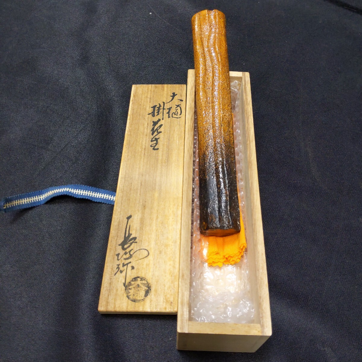 > 大樋 長阿弥窯 掛花生 3代 大樋長阿弥(研仁) 造 3.5×3.5×21.8cm 862
