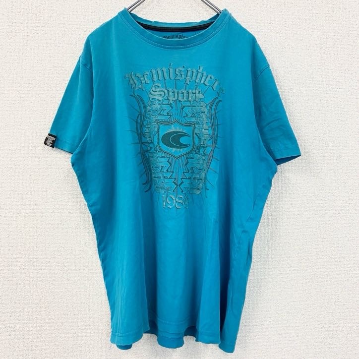 > 古着 used HEMISPHERE SPORT 半袖プリントTシャツ 水色 Y2K レトロ ライトブルー XXLサイズ