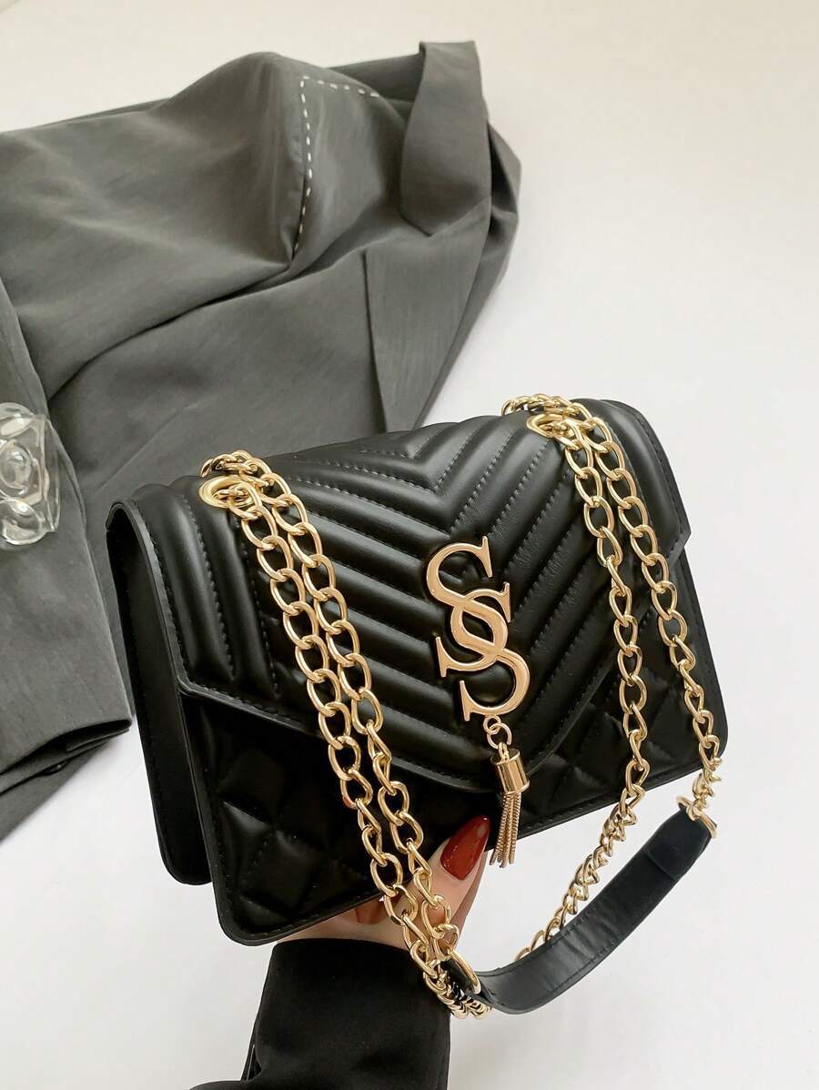 - バッグ レディース ショルダーバッグ おしゃれで多目的 プレステクスチャーチェーンクロスボディバッグ