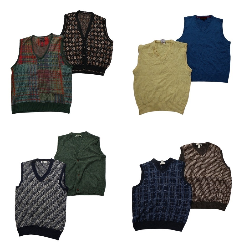 > 古着卸 まとめ売り ベスト セーター 8枚セット (メンズ M ) カーディガン 総柄 無地 Vネック アーガイルチェック NC3087 1円スタート