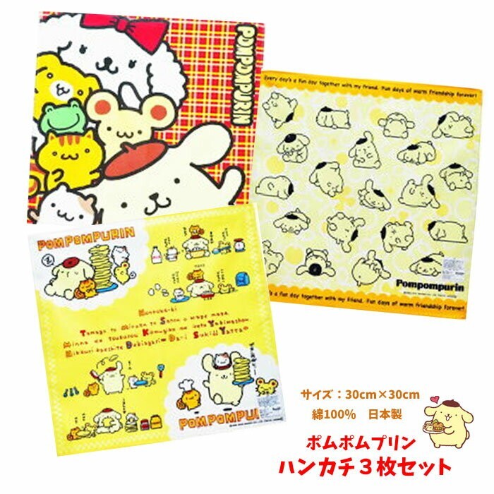 - ハンカチ ポムポムプリン 3枚セット 子供 女の子 キャラクター サンリオ sanrio ハンカチ