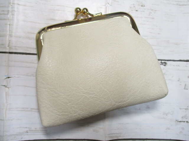 - 訳アリ 新品 財布 レディース がま口 ミニ財布 コンパクト シンプルデザイン 可愛いパステルカラー&ゴールド口金 PU素材 アイボリー