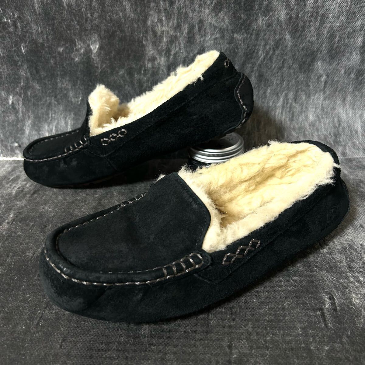- UGG ANSLEY 3312 アグ アンスレー スリッポン モカシン ムートン スエード ファー 24cm ブラック *EZ