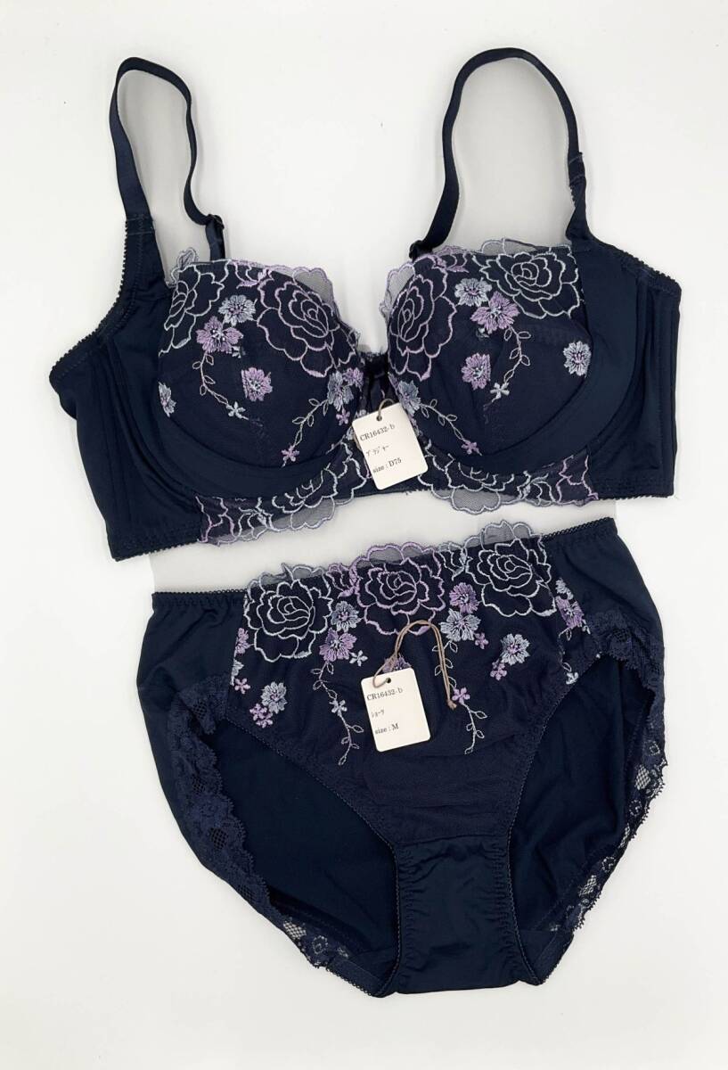 - CR16432 IB⑦【特価】新品 ブラショーツ D75/M 1セット ネイビー 有名ブランド レース 花柄 刺しゅう ストレッチ レディース