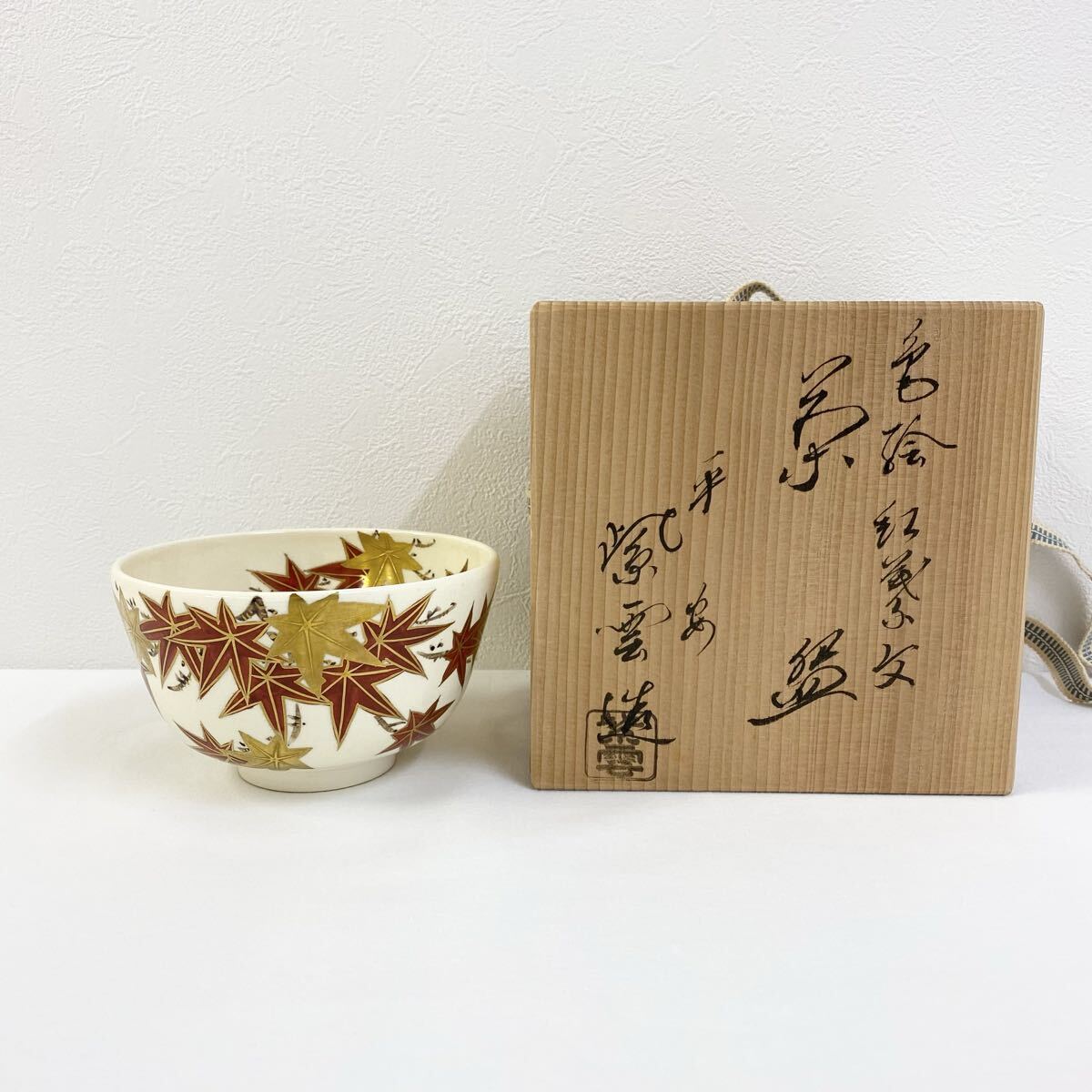- 色絵 紅葉文 茶碗 平安 橋本紫雲造 共箱 京焼 茶道具 陶器 和食器
