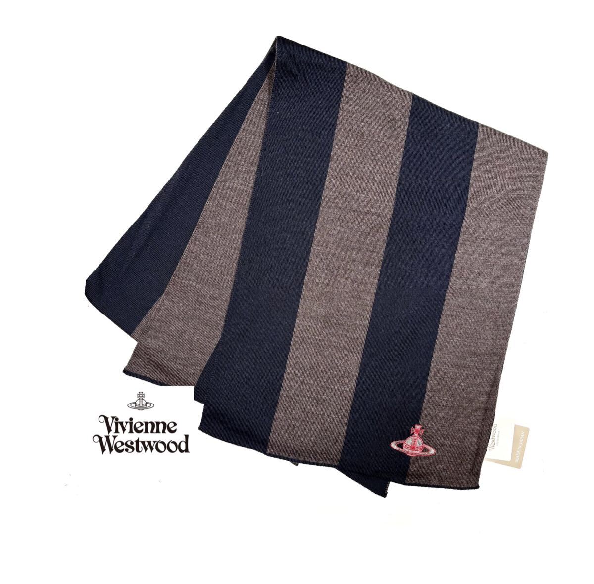 - H 送料無料 新品 正規品 ヴィヴィアン ウエストウッド マフラー ウール100% 日本製 オーブ刺繍