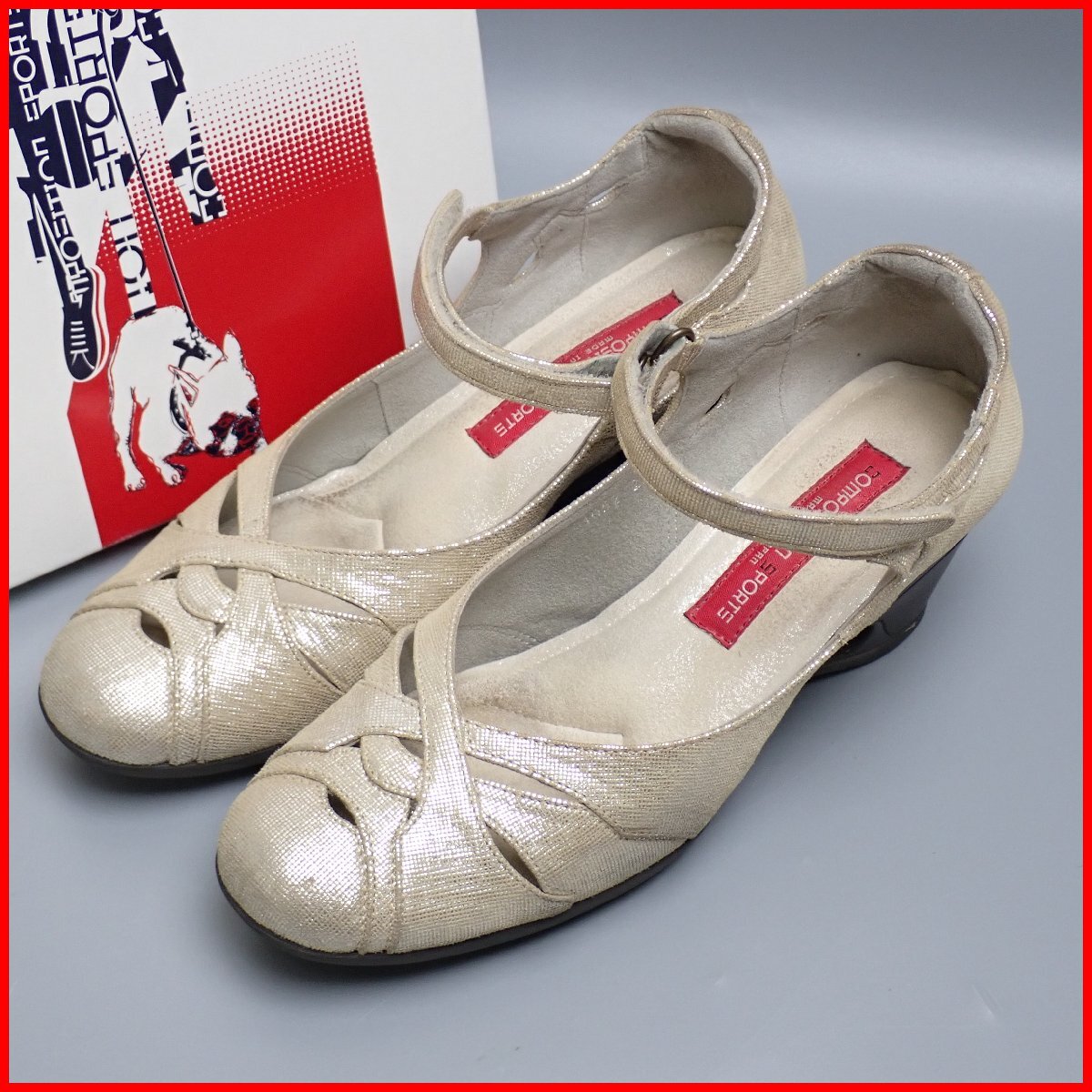 - ★COMPOSITION SPORTS/コンポジションスポーツ ストラップ ウェッジパンプス 22.5cm/ゴールド/レザー/ヒール高約6cm/外箱付き&1598800089