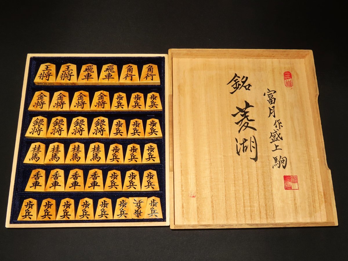 1000円スタート▲富月作菱湖薩摩黄楊孔雀杢盛上将棋駒▲清夏直筆揮毫桐製平箱付/新品