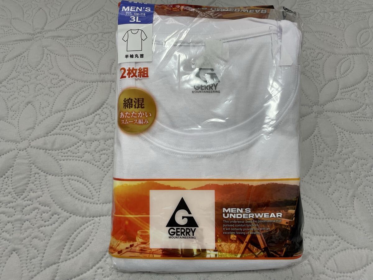 - ●3L●新品●2枚組●GERRY 半袖丸首 アンダーシャツ 綿混 あたたかいスムース編み 大きいサイズ●白