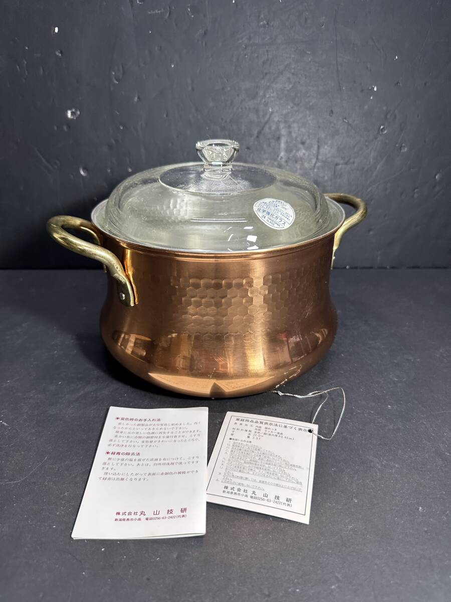 > ★コレクター必見!! 当時物 現状品 ガラス蓋付き 銅製 両手鍋 22㎝ 3.9L 調理器具 ビンテージ 雑貨 KZ732