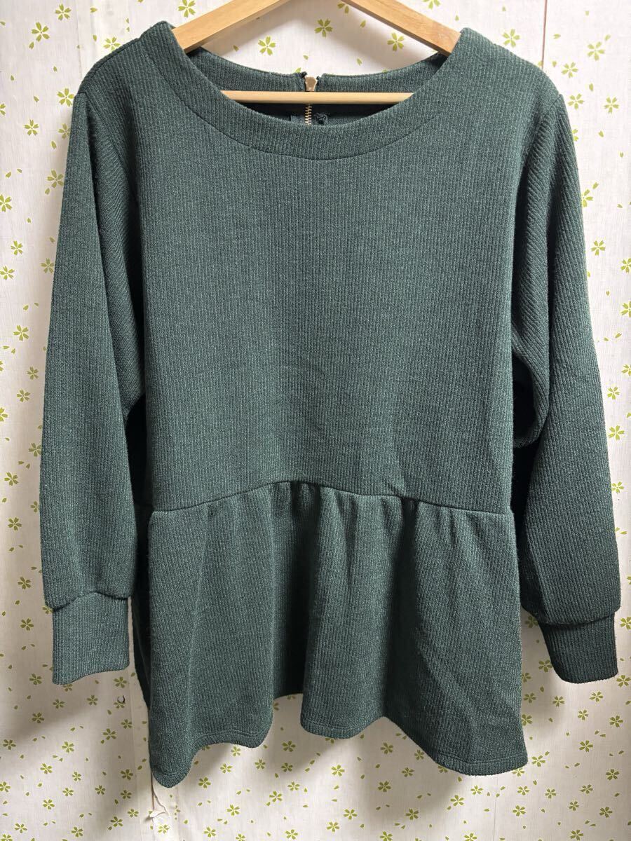 - LLサイズ グリーン ペプラムスタイル 長袖トップス カットソー トップス 長袖 グリーン