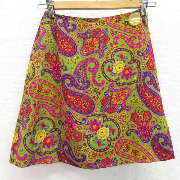 > イヴ・サンローラン YVES SAINT LAURENT ヴィンテージ スカート ミニ 巻きスカート 総柄 金釦 x952466
