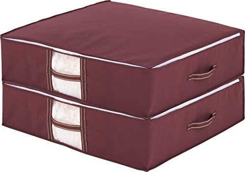 - アストロ 収納ケース 羽毛布団用 シングルサイズ ブラウン 2個組 不織布 持ち手3か所 透明窓付き 618-32