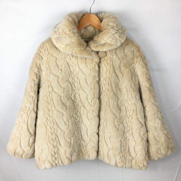 - 日本製/90s/Vintage★Private Label/プライベートレーベル ファージャケット レディースM ベージュ 縄編み柄 管NO.A10-22