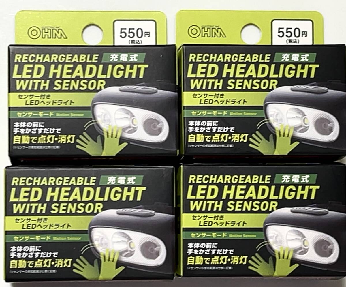 - ダイソー センサー付きLEDヘッドライト充電式×【4個】本体の前に 手をかざすだけで 自動で点灯・消灯 ・OHM レターパック発送!