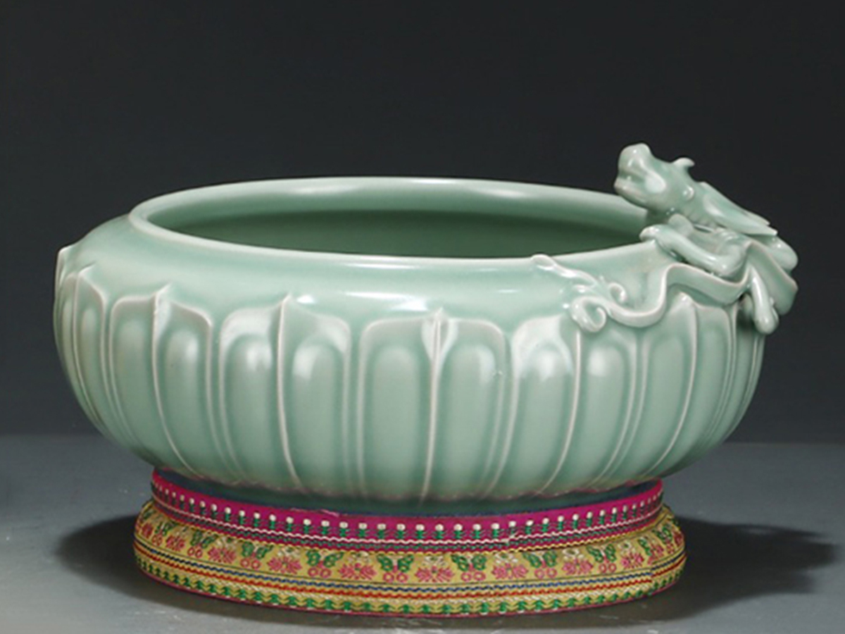 - ▽鴻▽宋時代 陶磁器 龍泉窯龍紋筆洗 共箱 時代物 中国古美術 骨董品