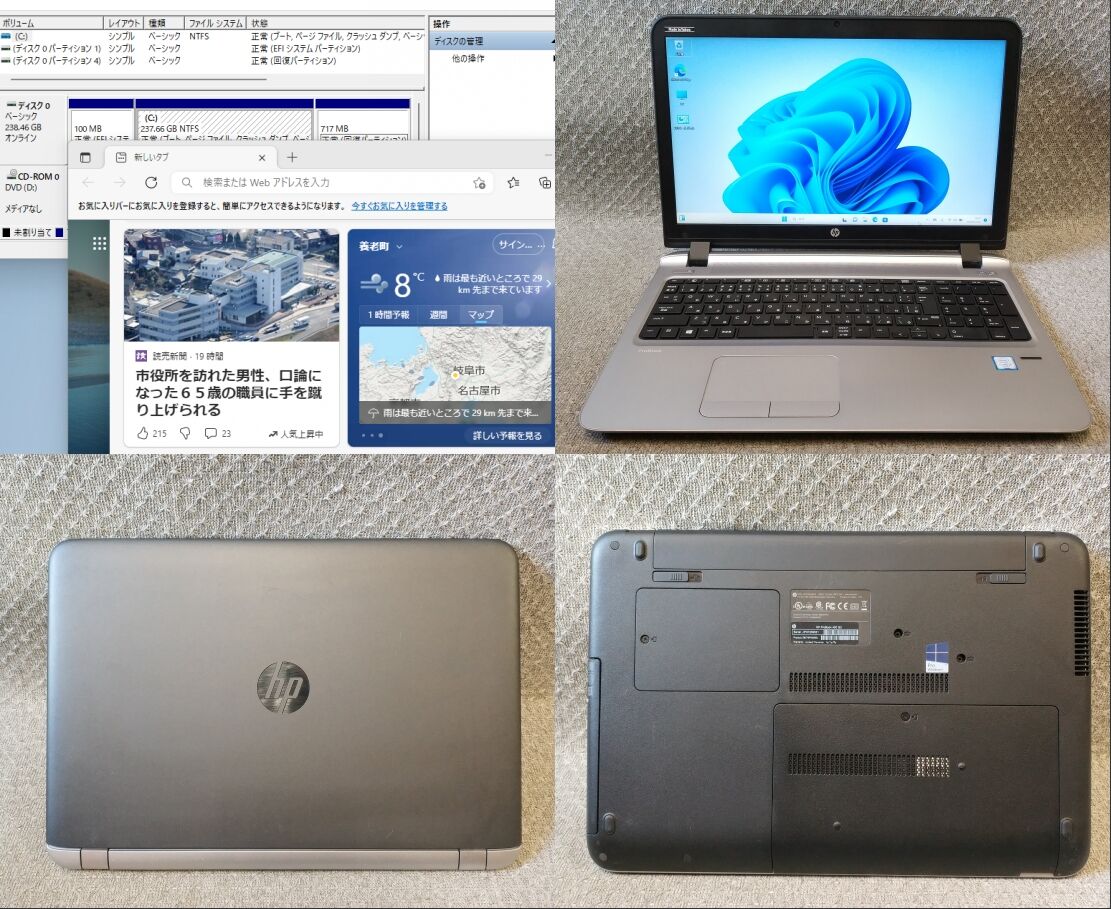 > Windows 7,10,11 選択可 新品SSD256GB HP ProBook 450 G3 ★ 第6世代 Core i5-6200U/メモリ8GB/Sマルチ/無線/Webカメラ/リカバリ作成/2227