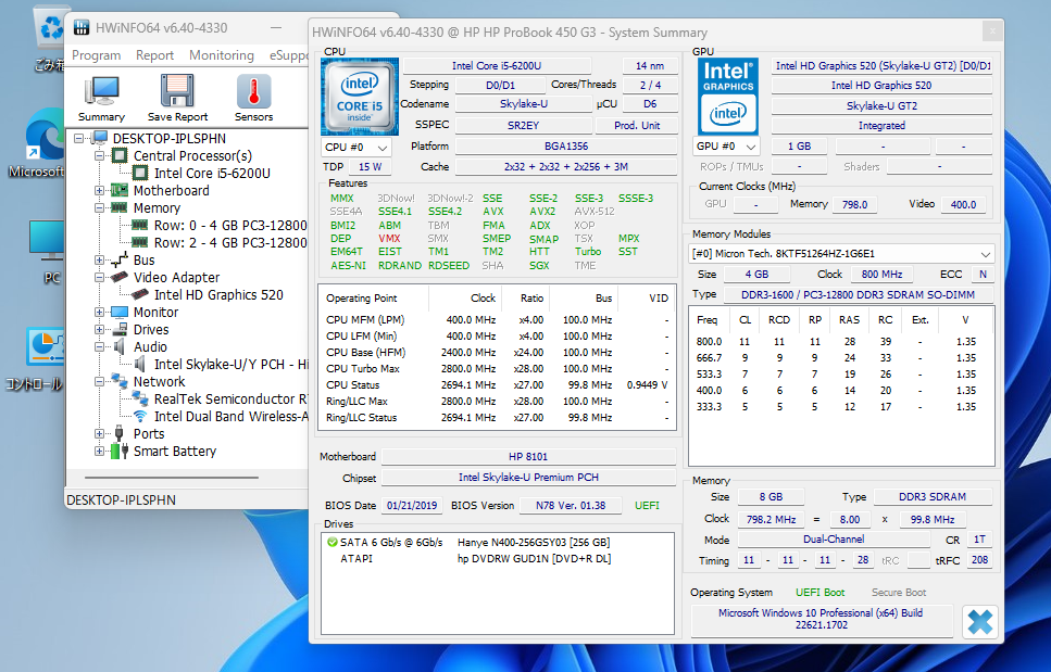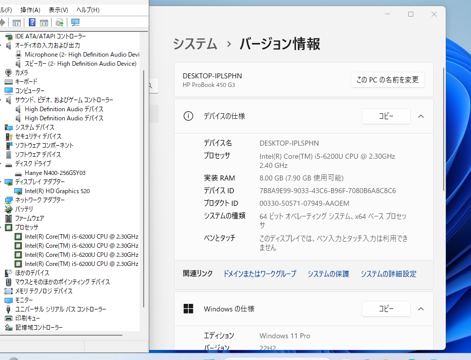 - Windows 7,10,11 選択可 新品SSD256GB HP ProBook 450 G3 ★ 第6世代 Core i5-6200U/メモリ8GB/Sマルチ/無線/Webカメラ/リカバリ作成/2227