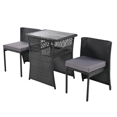 - ガーデン テーブル 3点セット ラタン調 ガーデンファニチャー ベランダテーブル ガーデンテーブル カフェ 家具 樹脂 【ブラック+グ KU879