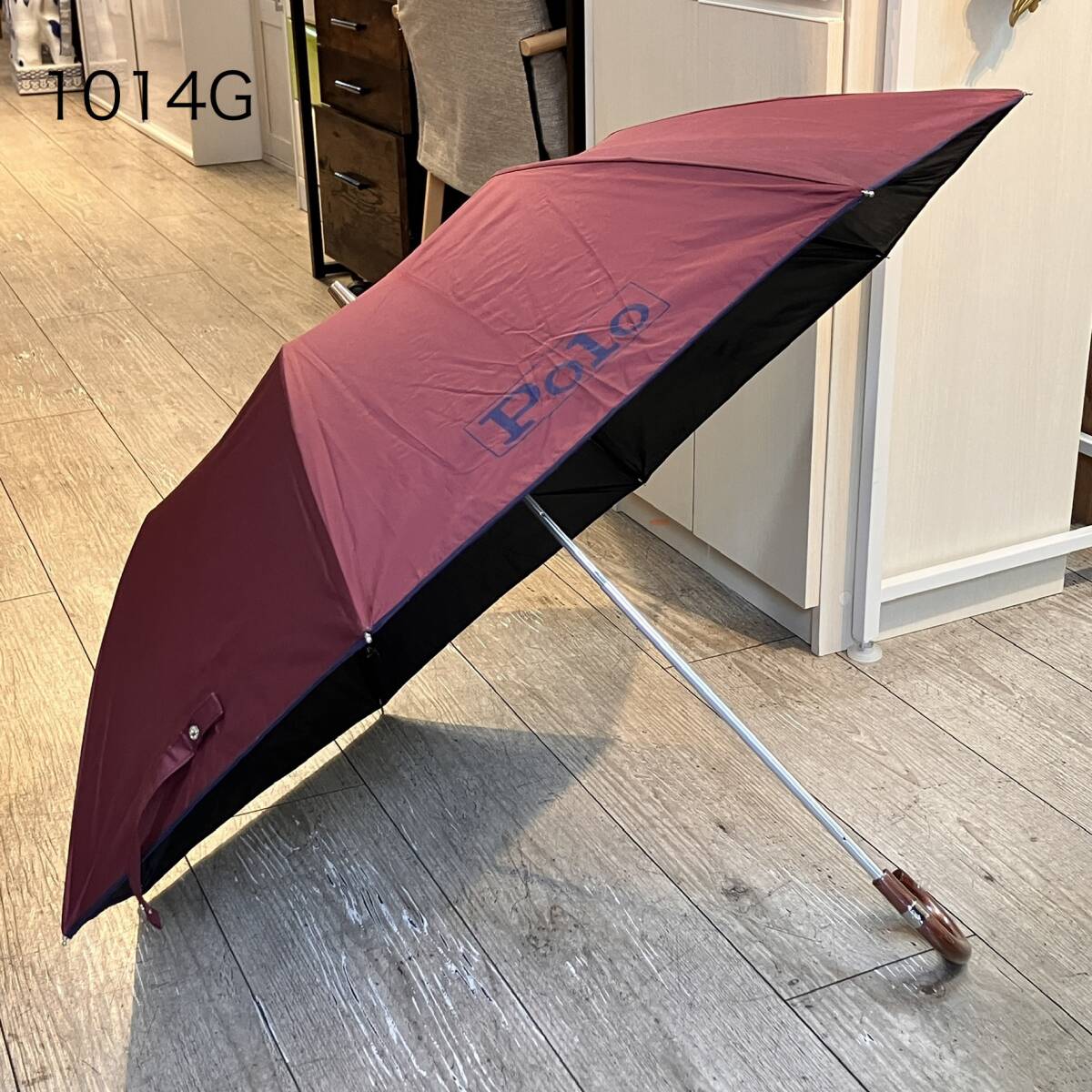 > (志)POLO Ralph Lauren/ポロ ラルフローレン 晴雨兼用 折りたたみ傘 収納袋付 ボルドー 日傘 雨傘 2段折り畳み 遮熱 軽量(I)1014G
