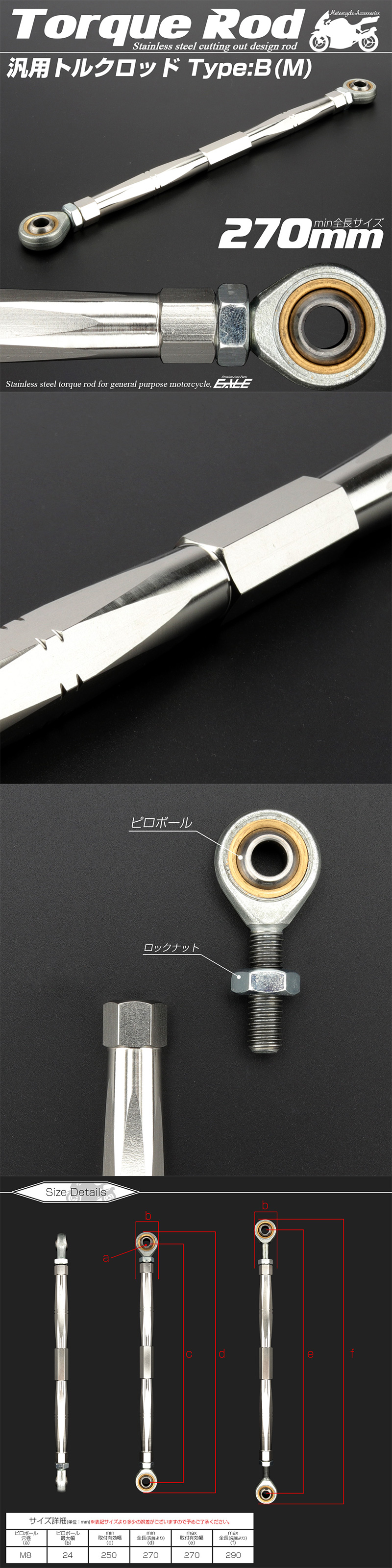 > 汎用 ブレーキ トルクロッド Mサイズ 取付幅250-270mm カラー シルバー タイプB ターンバックル ピロボール TH0076