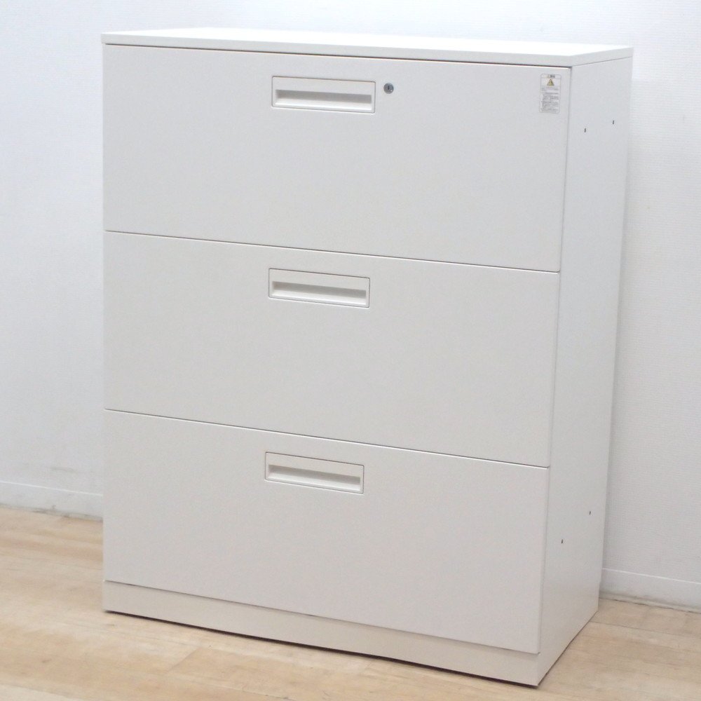 - コクヨ EDIA エディア 3段ラテラル書庫 BWU-L3A59SAWNN W900 D450 H1135 ホワイト 引き出し キャビネット 鍵有り KK18221 中古オフィス家具
