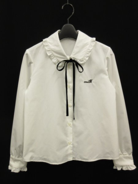 - ミルク MILK ★ 定価¥19800(税込) フリル衿 ロゴ刺繍 リボン付 長袖 ブラウス ★