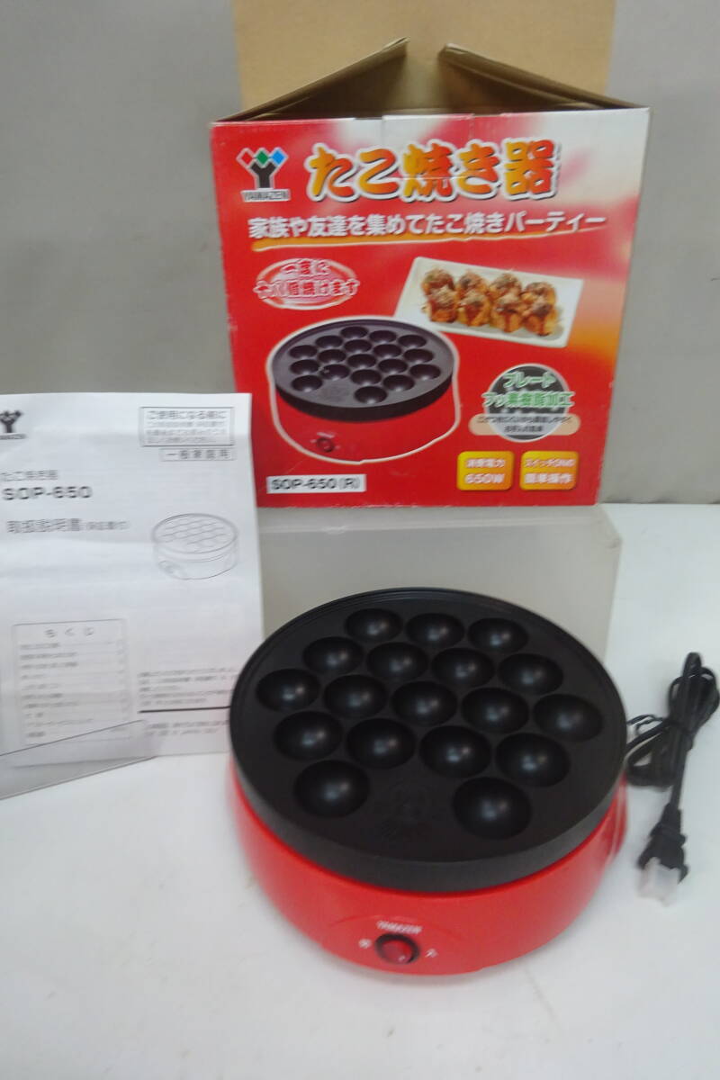 - ★291)電気たこ焼き器・YAMAZEN SOP-650 18穴 箱、説明書あり※中古品/動作OK/使用感現状品■80