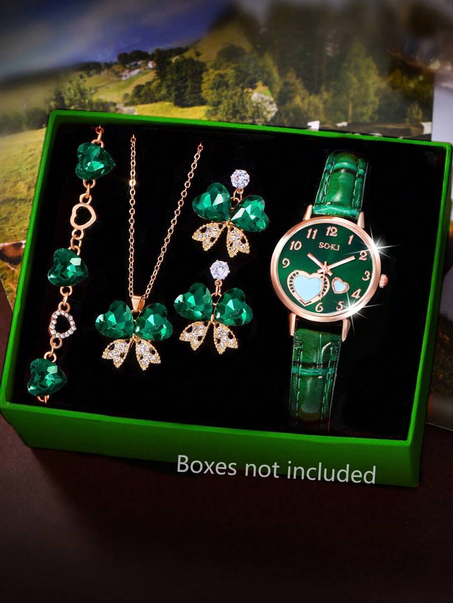 > 腕時計 レディース セット 1セット レディース腕時計 ファッションクラシック カジュアル クォーツ時計 星空 グリーン レディー