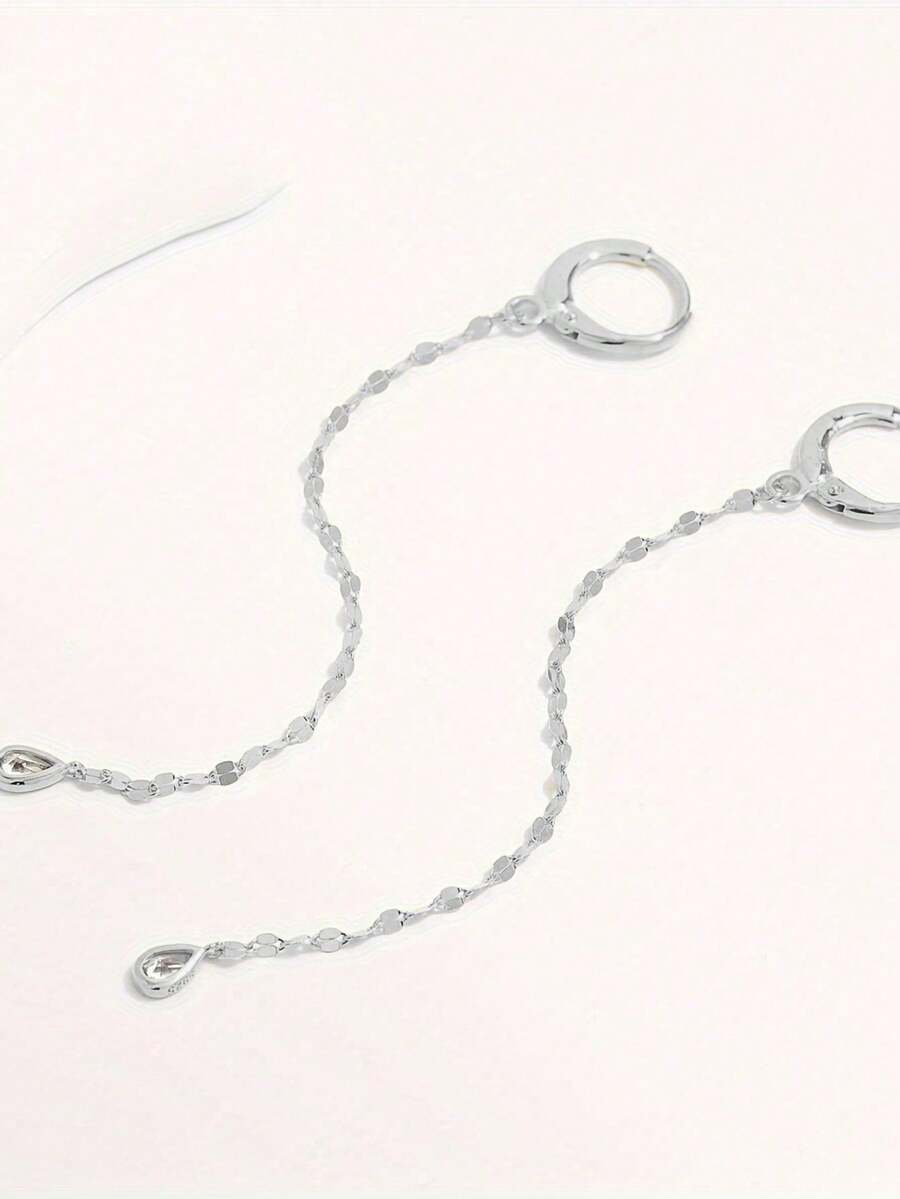 - ジュエリー レディース イヤーアクセサリー 925スターリングシルバー ミニマリスト ティアドロップ ジルコニア タッセル ペンダ